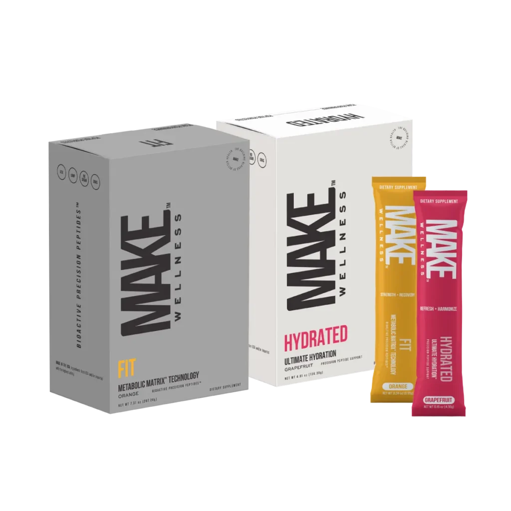 This thoughtfully paired system combines Fit and Hydrated, two bioactive precision peptide formulas designed to work alongside your body during periods of reduced appetite, changing nutrition patterns, and evolving energy demands.